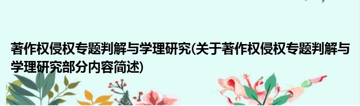 著作权侵权专题判解与学理研究(关于著作权侵权专题判解与学理研究部分内容简述)