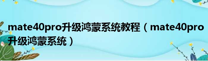 mate40pro升级鸿蒙系统教程(mate40pro升级鸿蒙系统)