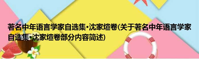 导读 大家好,今天小方来说说一篇关于著名中年语言学家自选集·沈家煊卷,关于著名中年语言学家自选集·沈家煊卷部分内容简述的文章,那么现在就