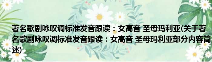 著名歌剧咏叹调标准发音跟读:女高音 圣母玛利亚(关于著名歌剧咏叹调标准发音跟读:女高音 圣母玛利亚部分内容简述)