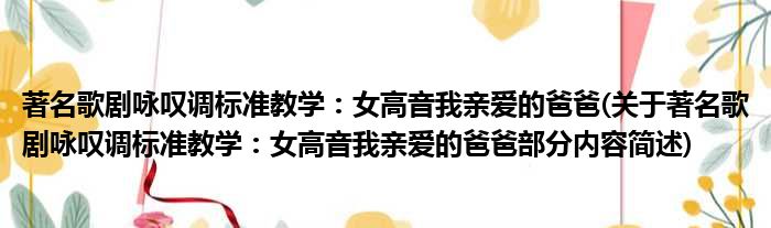 导读 大家好,今天小方来说说一篇关于著名歌剧咏叹调标准教学:女高音我亲爱的爸爸,关于著名歌剧咏叹调标准教学:女高音我亲爱的爸爸部分内容简