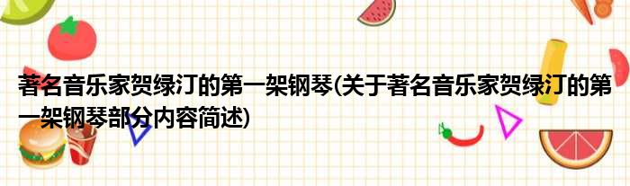 著名音乐家贺绿汀的第一架钢琴(关于著名音乐家贺绿汀的第一架钢琴部分内容简述)