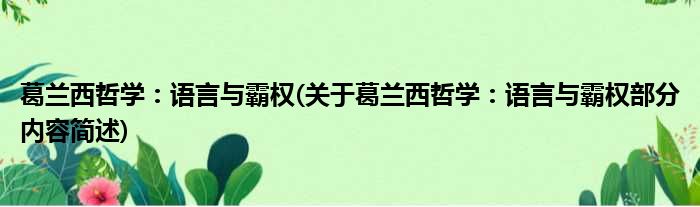 导读 大家好,今天小方来说说一篇关于葛兰西哲学:语言与霸权,关于葛兰西哲学:语言与霸权部分内容简述的文章,那么现在就为大家来简单介绍下,