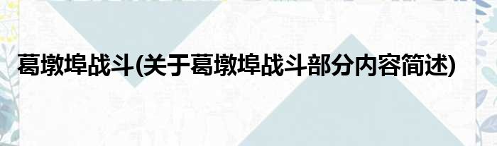葛墩埠战斗(关于葛墩埠战斗部分内容简述)