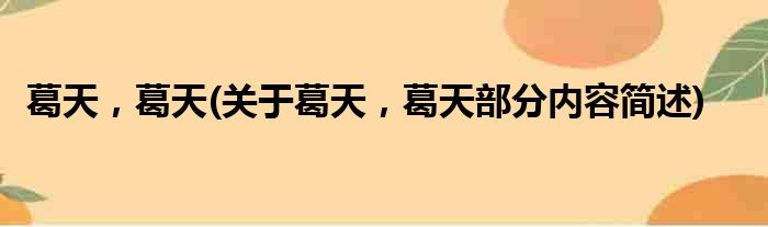 导读 大家好,今天小方来说说一篇关于葛天,葛天,关于葛天,葛天部分内容简述的文章,那么现在就为大家来简单介绍下,希望对各位小伙伴们有所帮