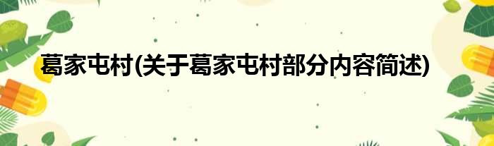 大家好,今天小方来说说一篇关于葛家屯村,关于葛家屯村部分内容简述的文章,那么现在就为大家来简单介绍下,希望对各位小伙伴们有所帮助。