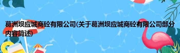 葛洲坝应城商砼有限公司(关于葛洲坝应城商砼有限公司部分内容简述)