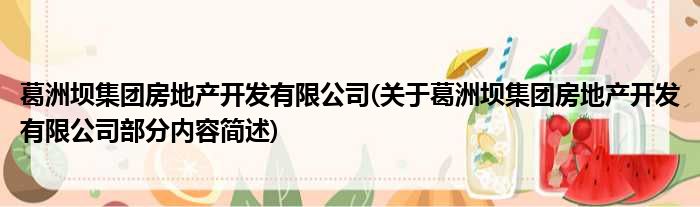 葛洲坝集团房地产开发有限公司(关于葛洲坝集团房地产开发有限公司部分内容简述)