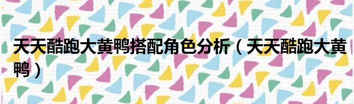 天天酷跑大黄鸭搭配角色分析(天天酷跑大黄鸭)
