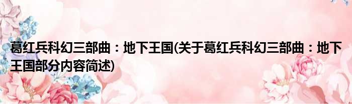 导读 大家好,今天小方来说说一篇关于葛红兵科幻三部曲:地下王国,关于葛红兵科幻三部曲:地下王国部分内容简述的文章,那么现在就为大家来简单