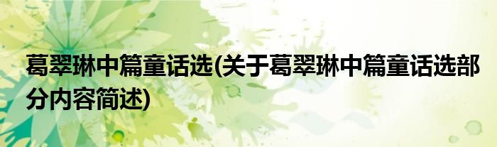 葛翠琳中篇童话选(关于葛翠琳中篇童话选部分内容简述)
