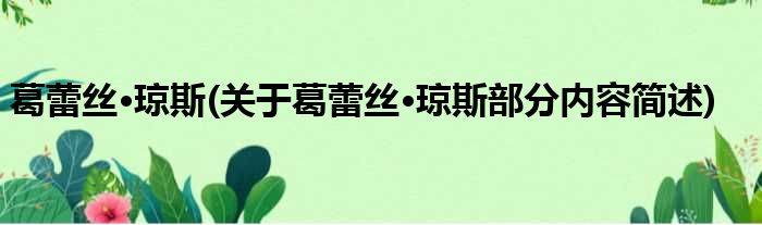 葛蕾丝·琼斯(关于葛蕾丝·琼斯部分内容简述)