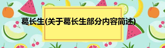 大家好,今天小方来说说一篇关于葛长生,关于葛长生部分内容简述的文章,那么现在就为大家来简单介绍下,希望对各位小伙伴们有所帮助。
