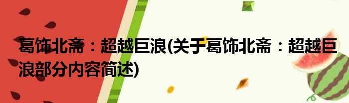 葛饰北斋:超越巨浪(关于葛饰北斋:超越巨浪部分内容简述)