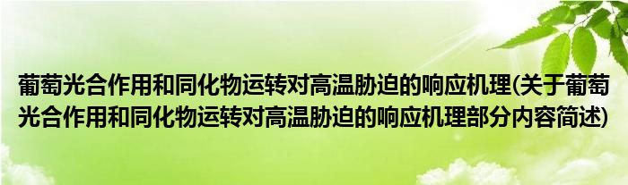 葡萄光合作用和同化物运转对高温胁迫的响应机理(关于葡萄光合作用和同化物运转对高温胁迫的响应机理部分内容简述)
