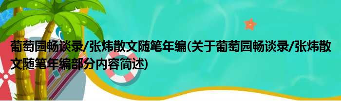 导读 大家好,今天小方来说说一篇关于葡萄园畅谈录 张炜散文随笔年编,关于葡萄园畅谈录 张炜散文随笔年编部分内容简述的文章,那么现在就为大家
