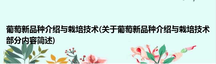 葡萄新品种介绍与栽培技术(关于葡萄新品种介绍与栽培技术部分内容简述)