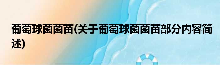 葡萄球菌菌苗(关于葡萄球菌菌苗部分内容简述)