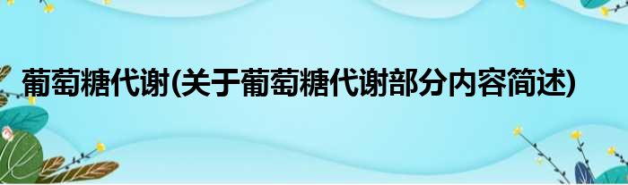 葡萄糖代谢(关于葡萄糖代谢部分内容简述)