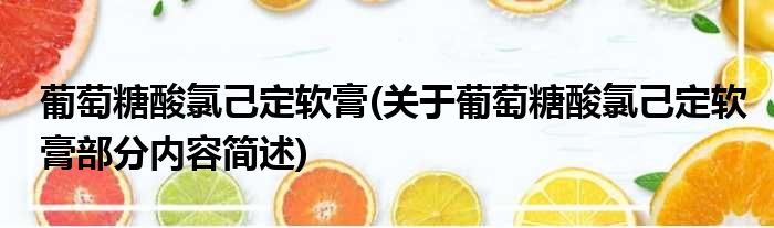葡萄糖酸氯己定软膏(关于葡萄糖酸氯己定软膏部分内容简述)