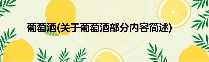 导读 大家好,今天小方来说说一篇关于葡萄酒,关于葡萄酒部分内容简述的文章,那么现在就为大家来简单介绍下,希望对各位小伙伴们有所帮助。