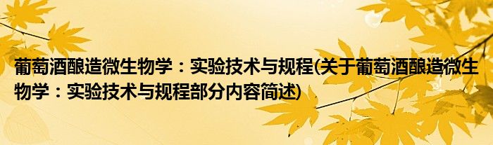 葡萄酒酿造微生物学:实验技术与规程(关于葡萄酒酿造微生物学:实验技术与规程部分内容简述)