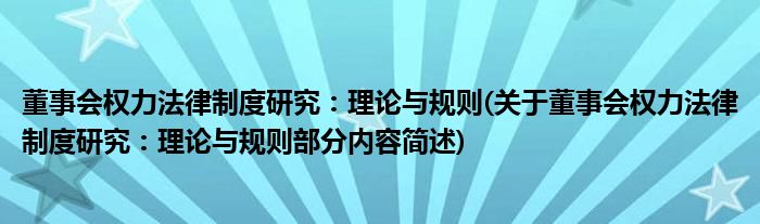 导读 大家好,今天小方来说说一篇关于董事会权力法律制度研究:理论与规则,关于董事会权力法律制度研究:理论与规则部分内容简述的文章,那么现