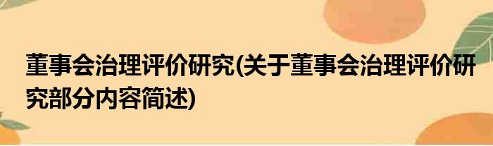 董事会治理评价研究(关于董事会治理评价研究部分内容简述)