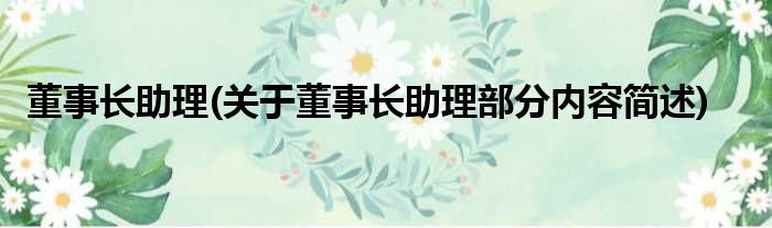 导读 大家好,今天小方来说说一篇关于董事长助理,关于董事长助理部分内容简述的文章,那么现在就为大家来简单介绍下,希望对各位小伙伴们有所帮