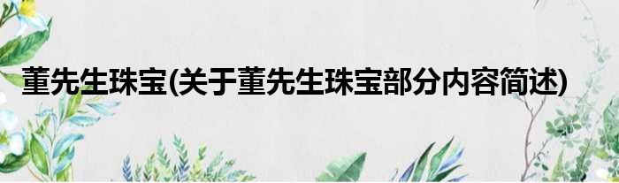 董先生珠宝(关于董先生珠宝部分内容简述)