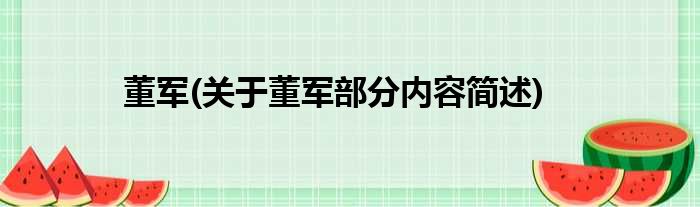 大家好,今天小方来说说一篇关于董军,关于董军部分内容简述的文章,那么现在就为大家来简单介绍下,希望对各位小伙伴们有所帮助。