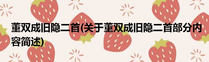 董双成旧隐二首(关于董双成旧隐二首部分内容简述)