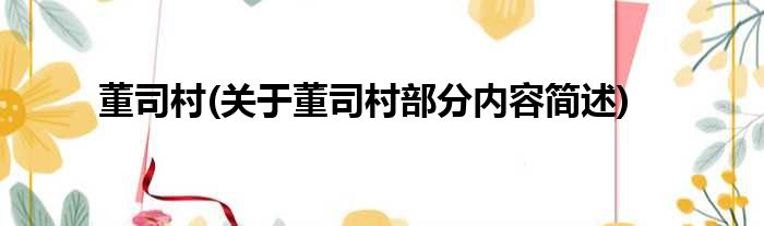 导读 大家好,今天小方来说说一篇关于董司村,关于董司村部分内容简述的文章,那么现在就为大家来简单介绍下,希望对各位小伙伴们有所帮助。