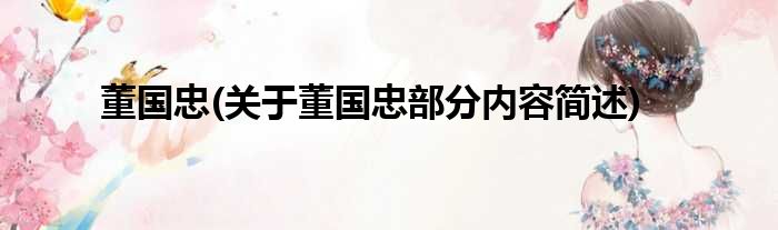 导读 大家好,今天小方来说说一篇关于董国忠,关于董国忠部分内容简述的文章,那么现在就为大家来简单介绍下,希望对各位小伙伴们有所帮助。