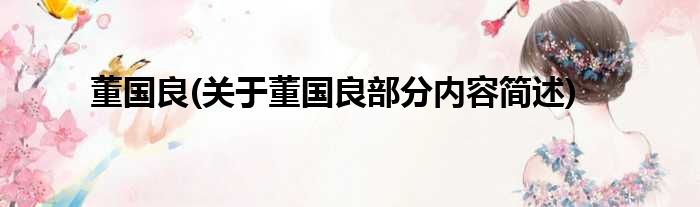 导读 大家好,今天小方来说说一篇关于董国良,关于董国良部分内容简述的文章,那么现在就为大家来简单介绍下,希望对各位小伙伴们有所帮助。