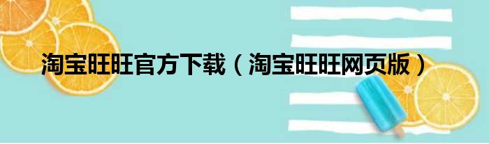淘宝旺旺官方下载(淘宝旺旺网页版)