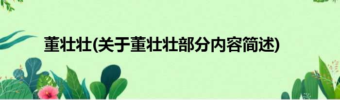 大家好,今天小方来说说一篇关于董壮壮,关于董壮壮部分内容简述的文章,那么现在就为大家来简单介绍下,希望对各位小伙伴们有所帮助。