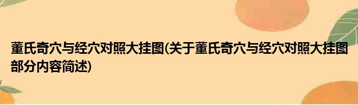 董氏奇穴与经穴对照大挂图(关于董氏奇穴与经穴对照大挂图部分内容简述)