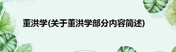 大家好,今天小方来说说一篇关于董洪学,关于董洪学部分内容简述的文章,那么现在就为大家来简单介绍下,希望对各位小伙伴们有所帮助。
