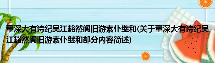 董深大有诗纪吴江豁然阁旧游索仆继和(关于董深大有诗纪吴江豁然阁旧游索仆继和部分内容简述)