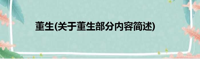 大家好,今天小方来说说一篇关于董生,关于董生部分内容简述的文章,那么现在就为大家来简单介绍下,希望对各位小伙伴们有所帮助。