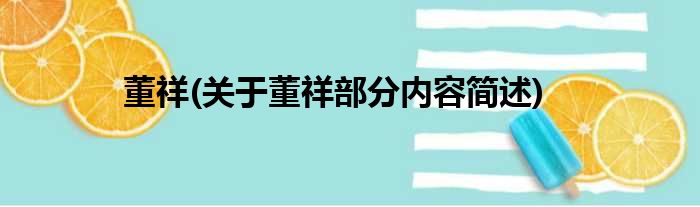 大家好,今天小方来说说一篇关于董祥,关于董祥部分内容简述的文章,那么现在就为大家来简单介绍下,希望对各位小伙伴们有所帮助。