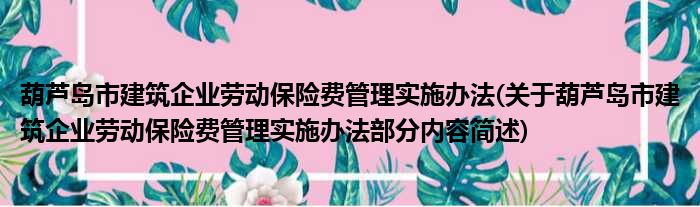葫芦岛市建筑企业劳动保险费管理实施办法(关于葫芦岛市建筑企业劳动保险费管理实施办法部分内容简述)