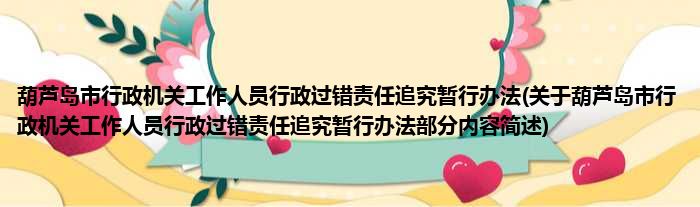 葫芦岛市行政机关工作人员行政过错责任追究暂行办法(关于葫芦岛市行政机关工作人员行政过错责任追究暂行办法部分内容简述)
