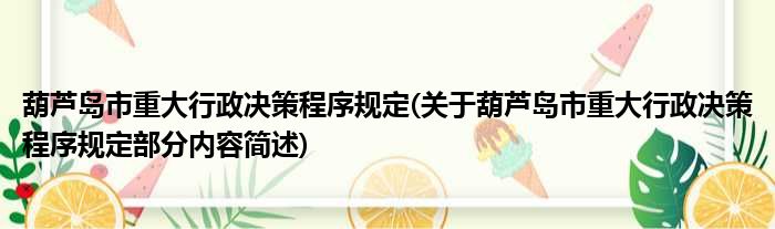 葫芦岛市重大行政决策程序规定(关于葫芦岛市重大行政决策程序规定部分内容简述)