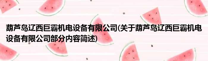 葫芦岛辽西巨霸机电设备有限公司(关于葫芦岛辽西巨霸机电设备有限公司部分内容简述)