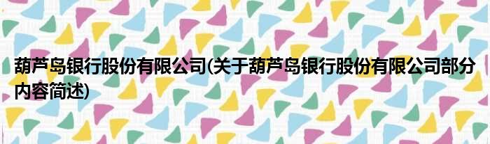 葫芦岛银行股份有限公司(关于葫芦岛银行股份有限公司部分内容简述)
