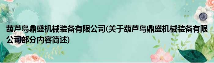 葫芦岛鼎盛机械装备有限公司(关于葫芦岛鼎盛机械装备有限公司部分内容简述)