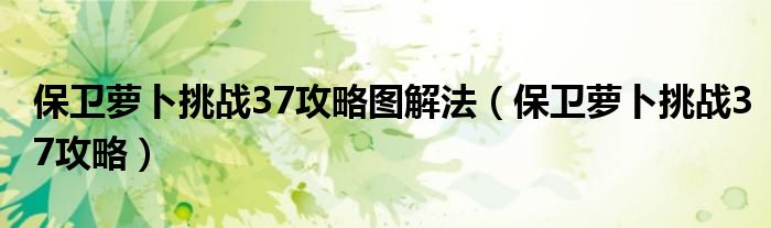 保卫萝卜挑战37攻略图解法(保卫萝卜挑战37攻略)