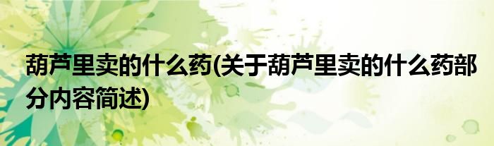 葫芦里卖的什么药(关于葫芦里卖的什么药部分内容简述)
